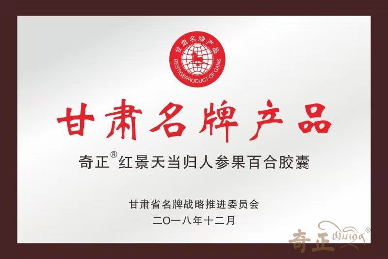 奇正紅景天當歸人參果百合膠囊獲甘肅省名牌產(chǎn)品